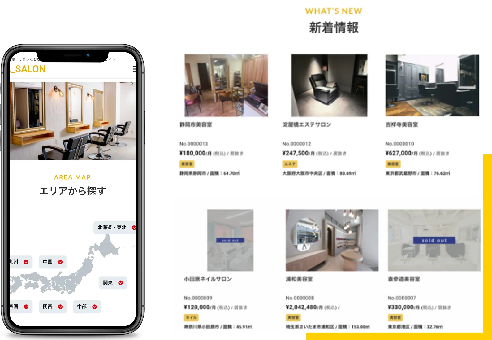 美容室やサロンなど、ビューティシャンの皆さまを対象とした居抜き物件情報サイトを運営しています。このサイトでは、店舗運営を考えている方や新規開業を目指す方が、すぐに使える物件情報を簡単に検索・閲覧できる仕組みを提供しています。